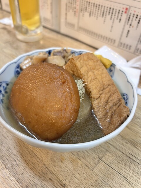 3軒目はこちら。 おでんが食べたくなり、店外に出ていた「おでん5点盛り合わせ」の看板に惹かれて入店しました。 カウンター席があり、ひとりでも入りやすい雰囲気。 店内はコンパクトですが席間に余裕があり、落ち着いて過ごせます(私はひとり飲みでしたが笑)。 注文したのは、ゆずはちみつハイボ... 詳細を見る