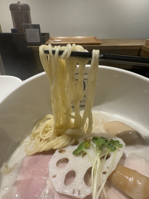 ◾️鶏白湯はポタージュではないがとろみがあり濃厚。浅草開化楼製の麺は細麺が美味しい