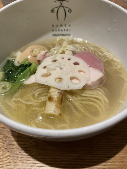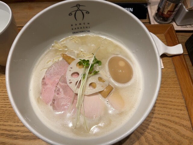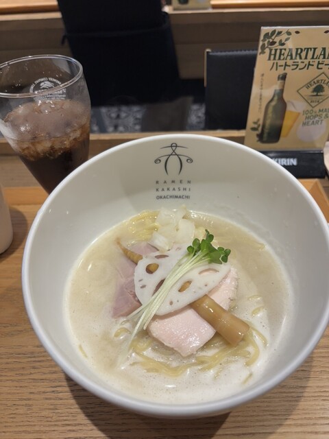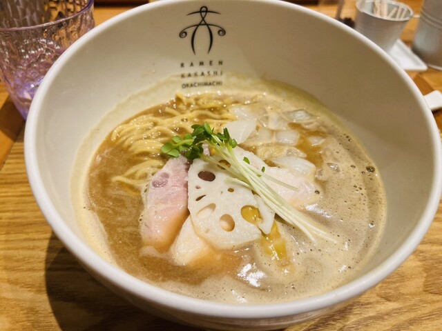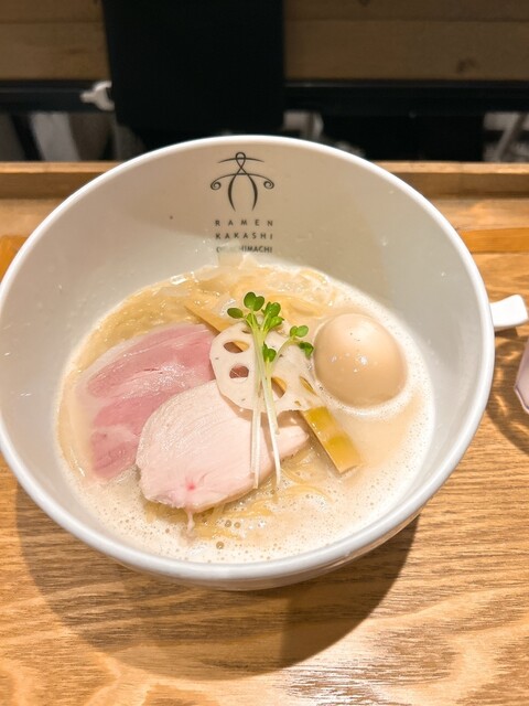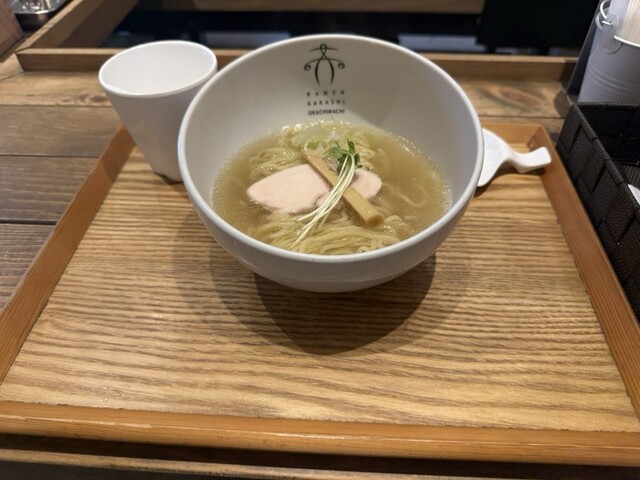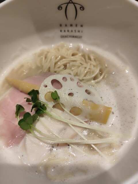 御徒町駅から徒歩約2分、おしゃれな雰囲気の「案山子」で白湯塩(豚)を頂きました。