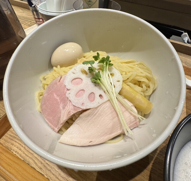 ふらっと入ったお店でしたが大正解!並ばずに入れました。暑すぎて冷やしラーメンを求めてこのお店に。とても美味しかったです…!器も写真映えするような形とロゴの位置で美しい…チャーシューは出来立てと伝えても...