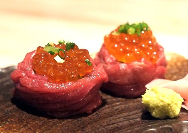 国産黒毛和牛を使用した山盛りの肉がとろりと溶け出すような自慢のとろ肉タワー鍋は必食!鉄板炙りから低温調理や【肉炊き鍋】も絶品の逸品!当店名物の低温調理の肉寿司、牛肉、豚肉、鶏肉の様々な肉寿司を堪能♪