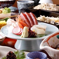 職人がこだわり抜いた自家製粉手打ちそばをはじめ、お造り盛り合わせや季節の天ぷらなど全9品。そばの風味豊かな香りと、打ちたて・茹でたての食感をお楽しみください。 別途90分飲み放題3,000円