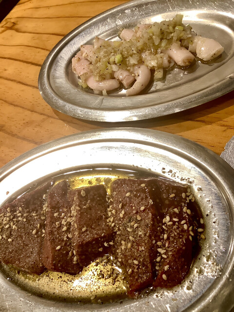 いつもの厚切り肉達(伝説盛りjr)ではなくまずは上タンとレバーから✋