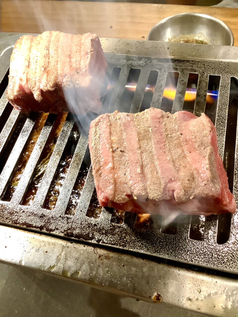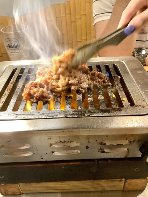 丁寧にスタッフさんが焼いてくれる。店長の妹さんが今夜は店を切り盛り♪