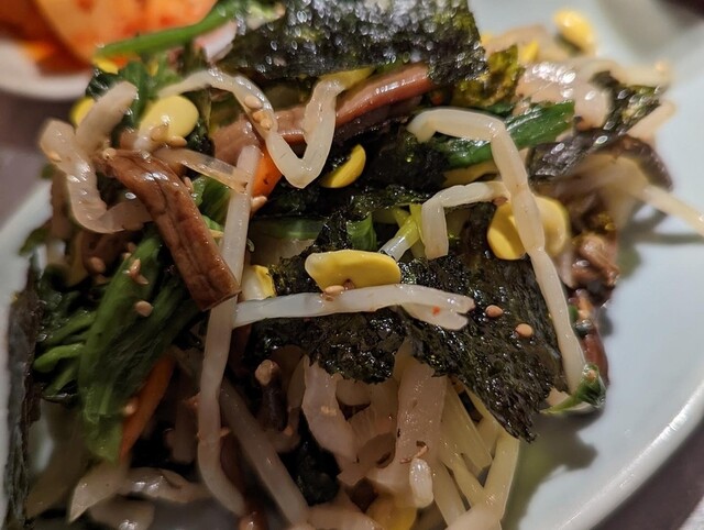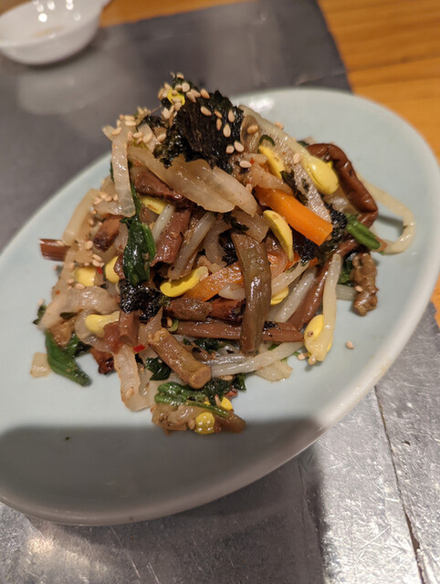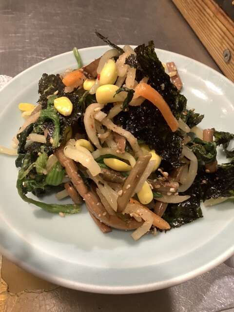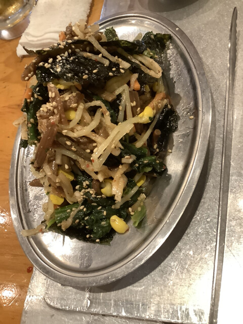 酒のお供にナムル盛りは必須。