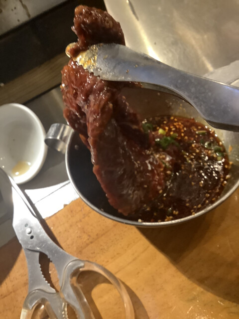 いつも頼む厚切りハラミではなくて壷漬けハラミに挑戦✋デカい!!!そして美味い‼️元気が出る肉だなあ〜♪