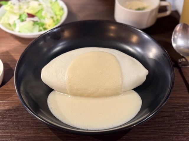 平日12:30、友人と3人で訪問。 店の中にはすでに1組の待ちがあり、約15分ほどで入店できました。焼き上がりにも少し時間がかかるので、ゆったりとした気持ちで待つのが◎。 そしてついにご対面!名物「シーフードピラフとチーズソースの白いオムライス」(¥2,000)。 見た目の美しさに... 詳細を見る