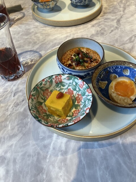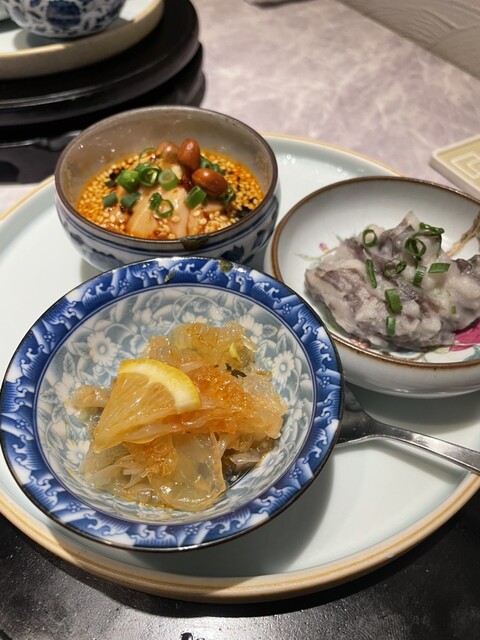 中華の中でもジャンルは結構幅広く、中華料理として想起されやすいお料理がたくさん出てきました。薬膳を使ったり、提供方法がちょっと面白かったりと、飽きません。前菜盛り合わせは女性受け良さそう。