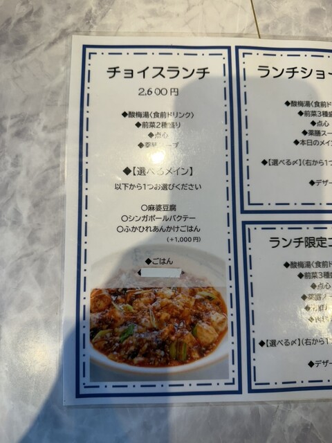 チョイスランチとの違いは、前菜が一品増えることと、メイン料理が付くことと、デザートが付くこと。...