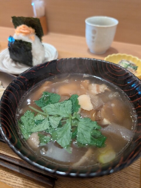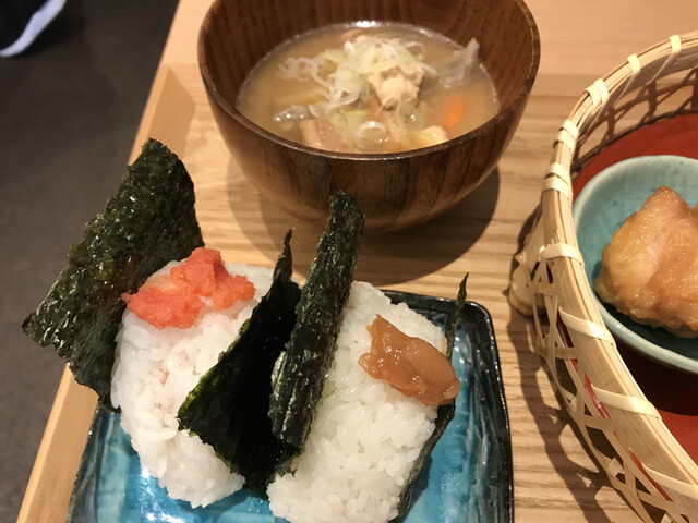 特A評価の”お米”・最高品種の”海苔”・ミネラルたっぷりの”天然天日塩”、と素材にこだわったおむすびがいただけます。
