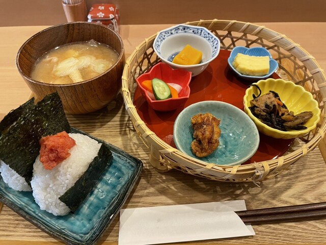 有名ホテル出身の料理長が手掛ける旬の素材をふんだんに使った本格和食と、ソムリエ店長が厳選する約40種類のワインとのペアリングもお楽しみいただけます。心を込めて握る名物の「おむすび」をはじめ、ランチメニューも充実。