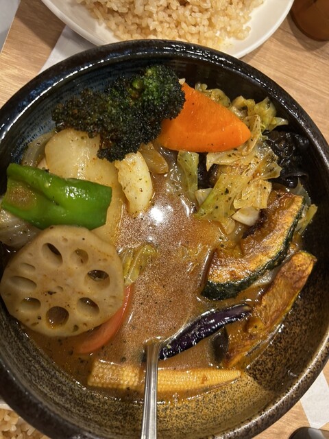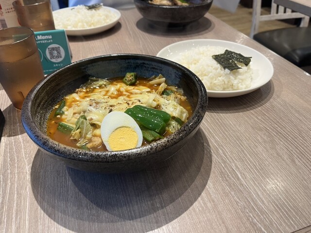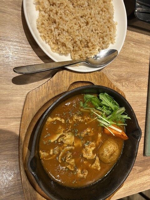 舞茸と野菜のスープカレー 1,390円 ライス大盛 100円 マンゴーラッシー アプリ登録で無料 日曜日18:00頃訪問。空席あり。 スマホで注文してから8分程度で着丼。 注文したのは舞茸と野菜のスープカレー。 店頭のメニューでもおすすめと出ていたのでこちらにしました。 スープはま... 詳細を見る