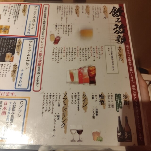 | コース | 飲み放題、3時間以上飲み放題 |
