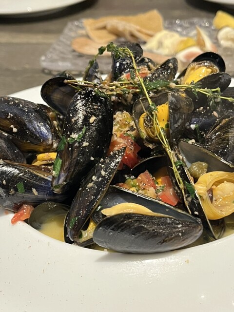 ムール貝もモンサンミシェル産との説明があり注文しましたが、このムール貝もめちゃくちゃ美味しい!貝の味が濃い!