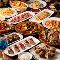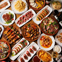 【2時間食べ飲み放題3,850円コース】唐揚げ・ポテト食べ放題!肉盛BBQプレート・ローストビーフ寿司・手作りガーリックライスなどが楽しめる全9品・別途席料1人様300円有9品