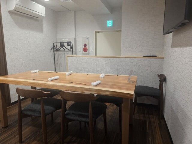 大杉一枚板カウンターが生む一体感。専用出入口付き個室完備