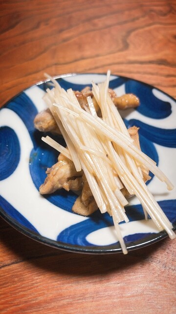 鴨の前にも数品いただけますが、その中にある丸々とした鶏レバー串がとても美味。一串の中で色々な食感が味わえた。サラサラとしたタレと大根おろしが合います。