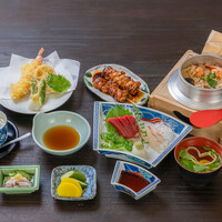 ご宴席や慶法事などに最適のコース料理。主役の釜めしは、店内の釜めしメニューからお好きなものを選択可能(1850円の釜めし内からのご選択)。豊洲より仕入れる新鮮な海の幸、天ぷら等釜めし春の名物どころの料理に加えた最適のコースです。