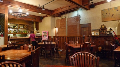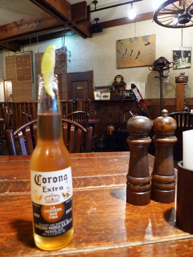 ウエスタンな店内。ビールを注文したら瓶だけ出てきました。