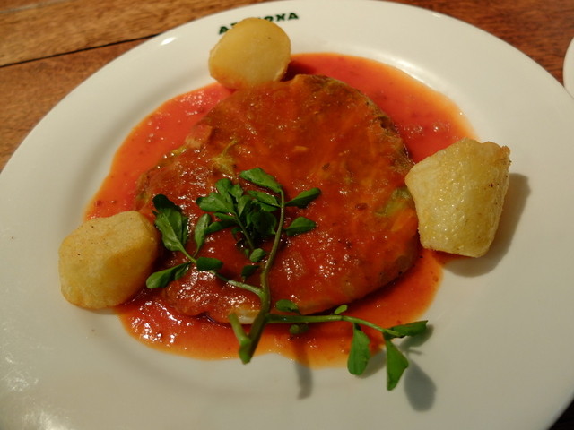お店入口の看板にも書いてあるように、永井荷風も通ったアリゾナ・キッチン。名物メニューのロールキャベツはまさに思っていたとおりの味。優しいソースがキャベツの中のお肉にも浸みて長い歴史の中でも変わらない味...