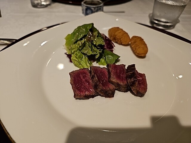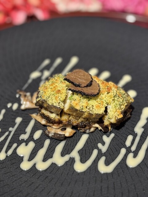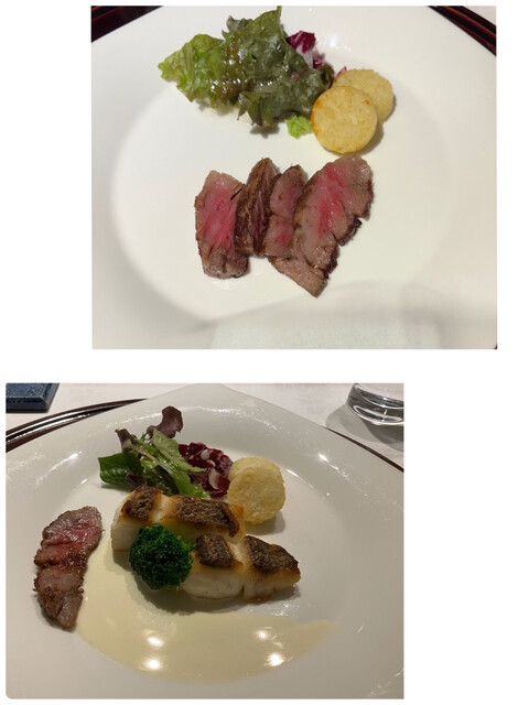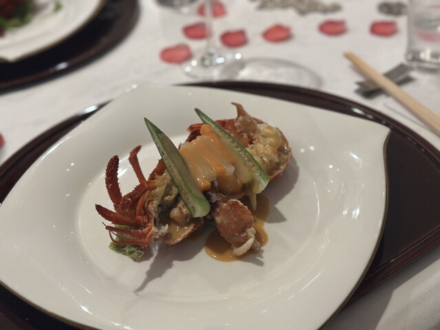 前菜+オマール海老+鮑+和牛のコースに、最初にオススメされた牡蠣のグラタンを追加でオーダ...