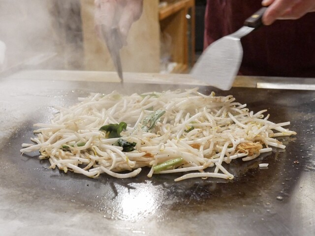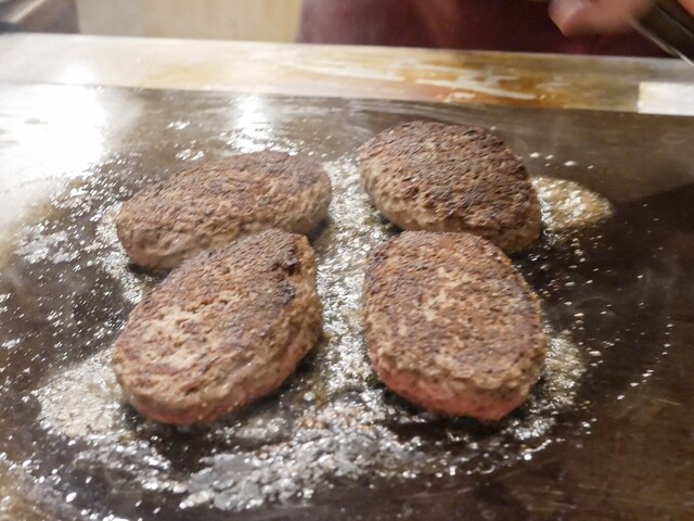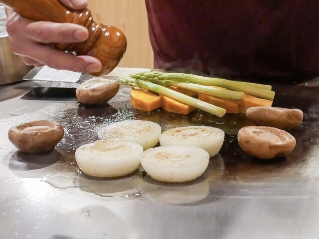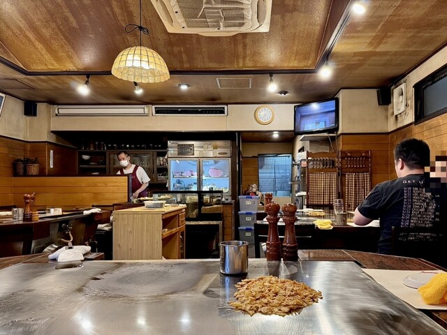 目の前の鉄板で調理されるライブ感を存分に味わえる配置になっています。