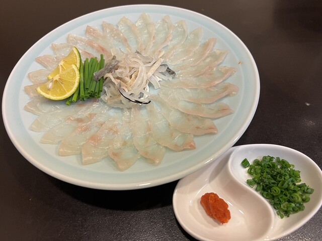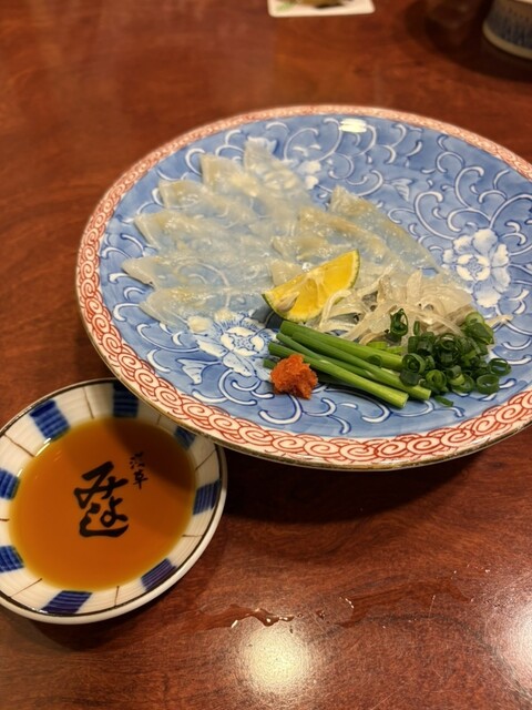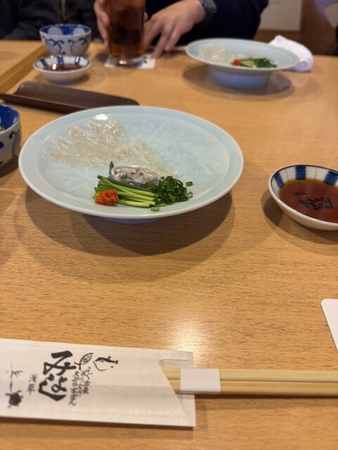 和室に通されました。10人くらいで行きまして、とても雰囲気と良い味といい、良いお店です。コース料理を堪能しましたが、フグはかなり美味しかったです。特にフグ刺しが弾力があって良かったです。飲み物も昼から...