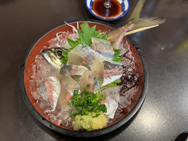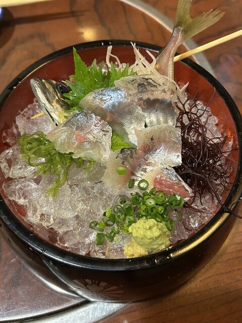 みよし@浅草にて、さんまの塩焼き+ウマズラハギ刺身+活きアジ