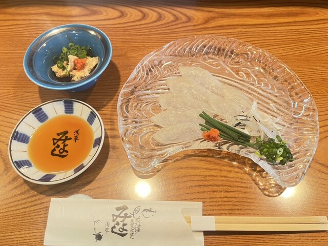 活魚を知り尽くした職人が提供するふぐ・すっぽんの老舗。浅草みよしの名物【活きいか】!