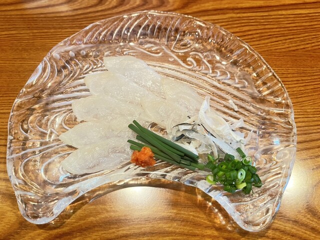 ふぐ刺しはねっとり、皮はこりこり、あ...