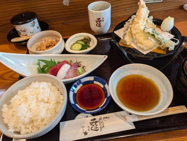 みよしでランチにしてみた。みよしは17年半前にコースではなくアラカルトで利用したことがある。すっぽんやふぐをリーズナブルに食べられる店である。なので、ランチメニューにも、すっぽん雑炊やフグ雑炊があった。冬なら迷わずそっちに行くのだが、暑いので躊躇して、和定食(1650円)にした。天ぷらと刺身と小鉢、ご飯、香の物、みそ汁、そして遅れて茶碗蒸しも来た。天ぷらは衣も軽く、油も軽い。海老自体はしっかり火が...