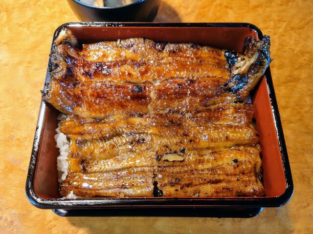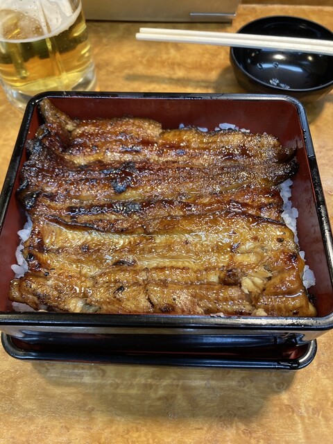 鰻は小ぶりだが、濃いめのタレで美味しく、ぺ...