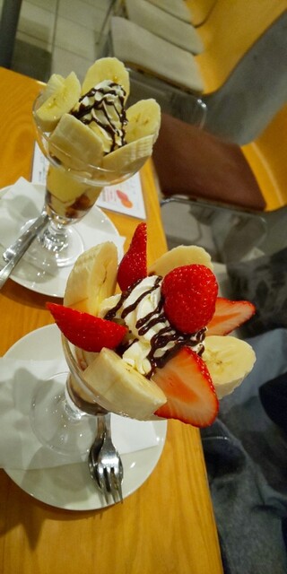 浅草の商店街の一角に構えるフルーツパフェ屋さん。もともとは果物屋とのことでフルーツを存分に活かしたパフェを提供。3種のいちご食べ比べパフェ、12種類の柑橘パフェを注文。いちごは普段食べ比べをする機会が...