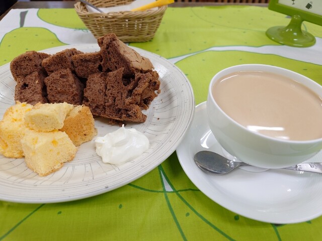 最後にシフォンケーキ。今日は紅茶味にした。