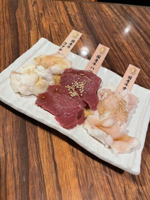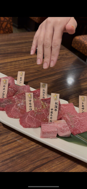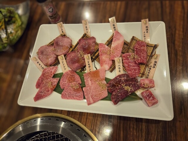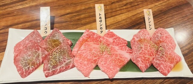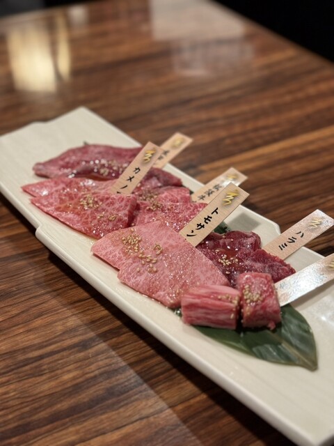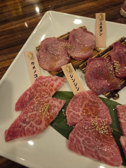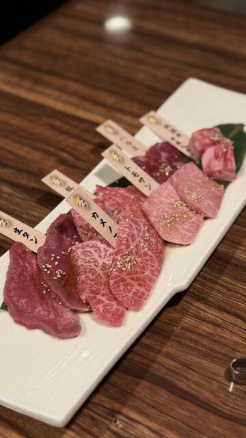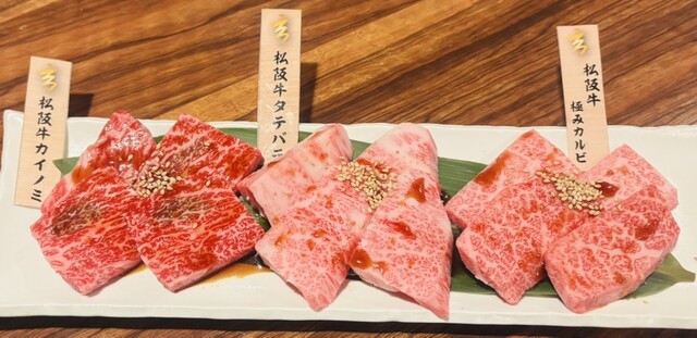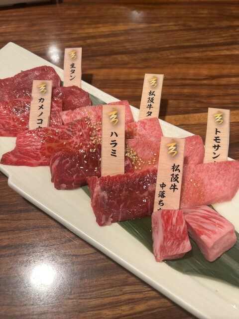 (タン塩、松坂牛ササミ、マルカワ、トモサンカク、シンシン、ハラミ)