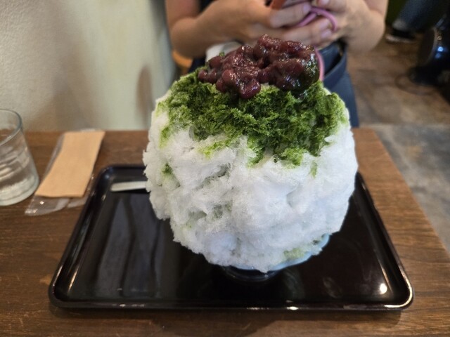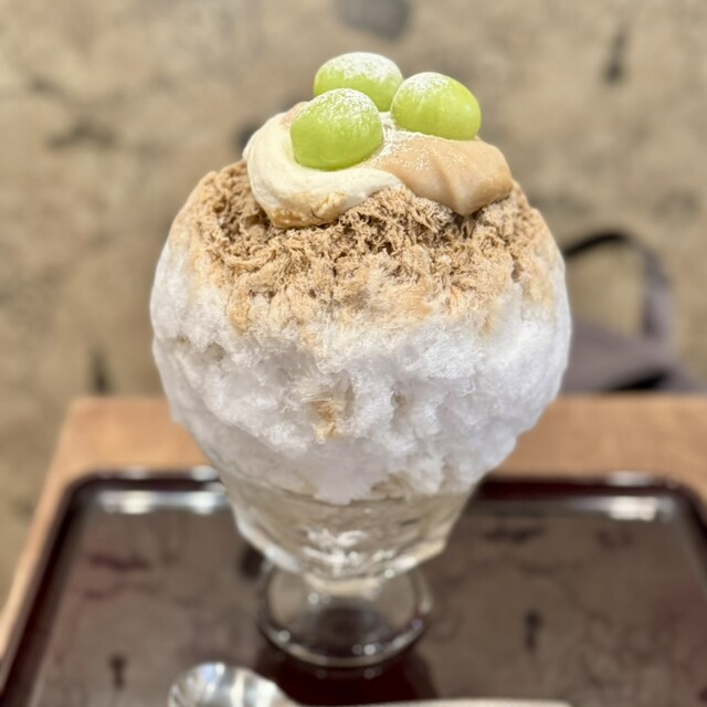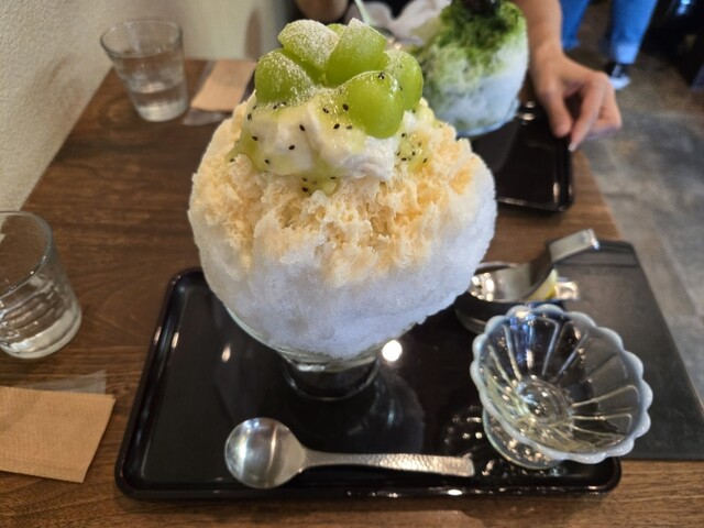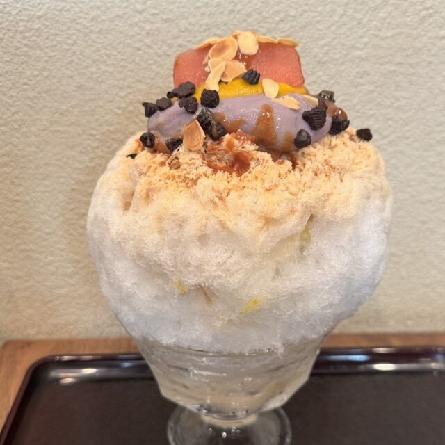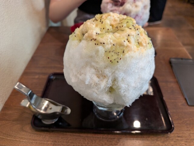 かき氷の中にもクリームや果肉が入っているので、味のない氷だけ、、、っていうことがなくて最高。美味しい。