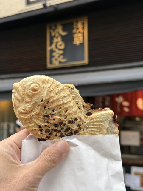 浅草の下町情緒あふれる一角に佇む 百名店で、たい焼きのテイクアウトの他、店内でかき氷や甘味などもいただけるようで人気のお店です(❃´◡`❃)
