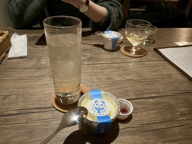 それぞれの合いそうな割り方を聞いて、注文。お供はナッツ。これがまた香りが良くて、ついつい飲んでしまう。締めとして食べたプリンも美味しかったです。