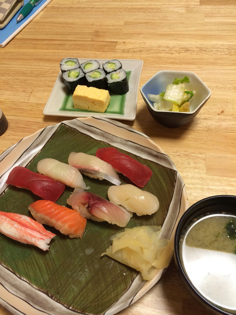 お寿司の他にはセットでお味噌汁とおしんこと卵焼きがついてました。