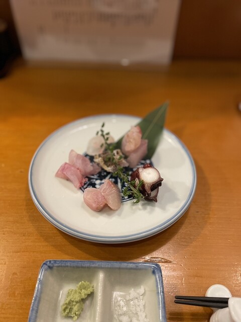 会社帰りに居酒屋で夕飯です。 浅草寺の裏手、言問通りから北に2本入った路地にお店はあります。 平日夜19:00に訪問、5日前に電話予約しました。 カウンター数席の小さなお店ですが、我々が行った時は20:00過ぎなら予約なしでも入れていました。 注文したのは以下の通り。 ・刺身盛り合わせ... 詳細を見る