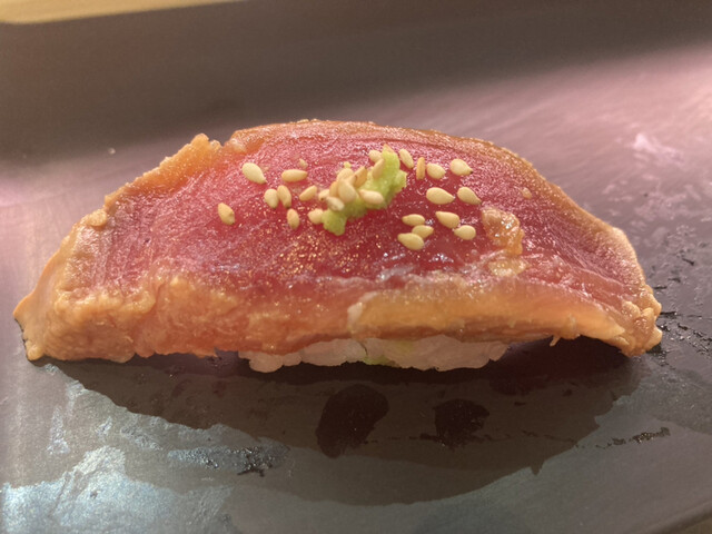 店長さんがいたら良いなぁと店前に立ち 窓越しに店長さんが居るのを確認。 ラッキーと店内に入りました。 カウンター立ち食いのお店ですが。 美味しいのが一番。 のど黒の炙りから始めます。 赤海老 変わらず鮪が美味しい。 トロたくの細巻きも美味しい。 大満足の夕食です。 店長さ... 続きを読む»