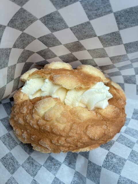外はカリカリ、中はふわふわ、サイズは大きくてもとても軽く小さなお子様でもペロリと1個食べれてしまいます。