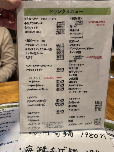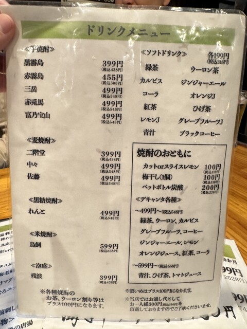 ドリンクも破格。生ビール199円という驚きの価格設定に、「物価の概念崩壊酒場」と勝手に命名。焼酎から梅酒、ハイボールまで何でもござれである。