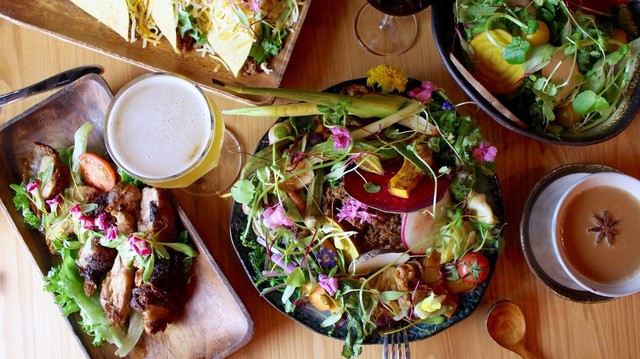 日本の美味しい野菜を厳選しました。無農薬や自然栽培野菜を使用した、浅草で数少ないお店です。ヴィーガン対応のメニューも用意しているので、幅広い方に満足して頂けると思います。昼はおしゃれなオーガニックカフェ、夜は夜景を楽しめる隠れ家バーに変わります。オーブン料理でお時間頂戴するので、ランチタイムはご予約頂けるとスムーズにご案内できます。