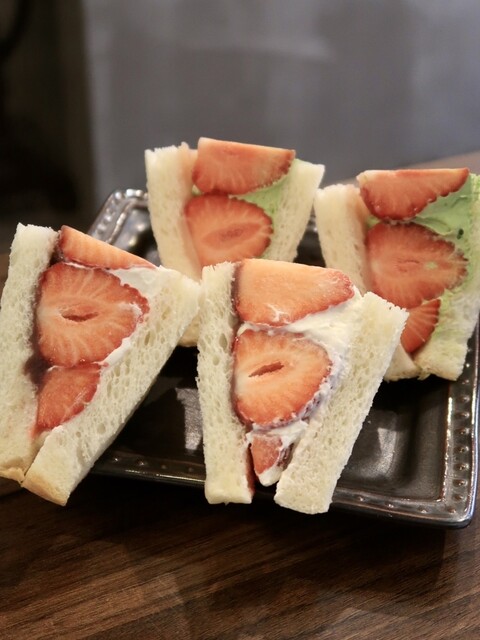 浅草・花やしき前にある人気カフェ『スケマサコーヒー』。フルーツサンドが看板メニューで、この時期は特にいちご「あまおう」を使ったフルーツサンドが人気だ。