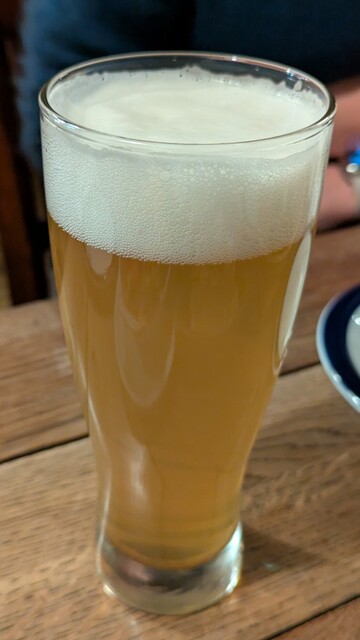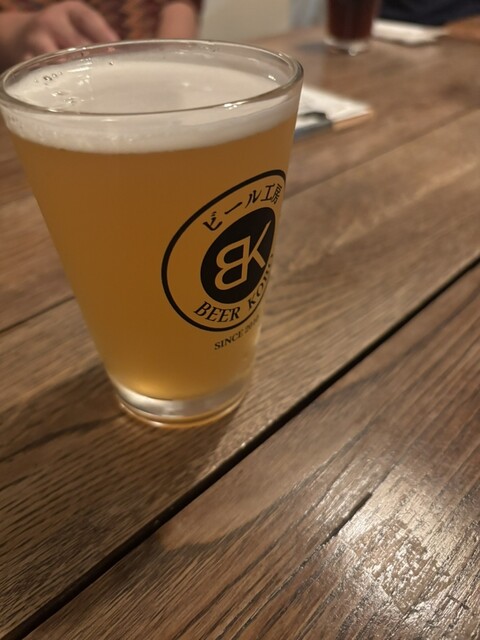 1階でビールをもらいに行き、2階フロアテーブル席で頂きます♪