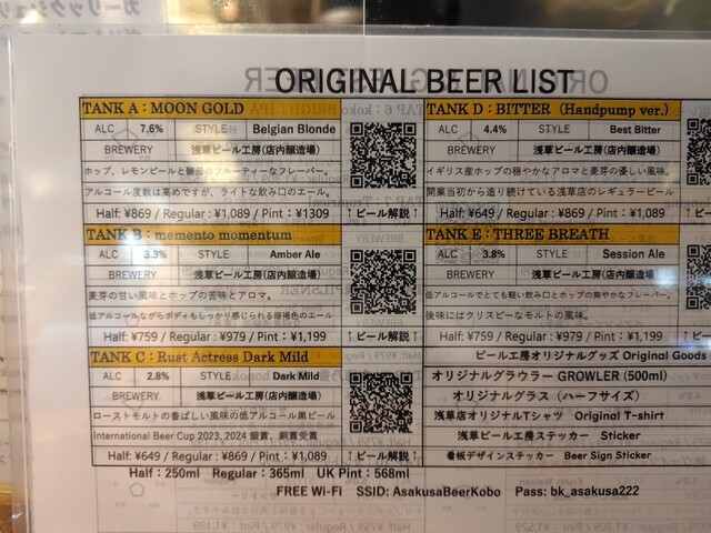 オリジナルビールはTANK A〜Eの5種類。TANK Dは定番ビールの味。TANK Bは程よい苦みのエールで、とても気に入っ...
