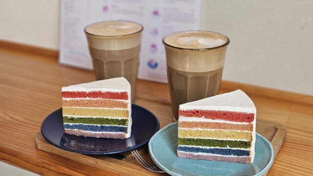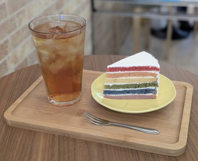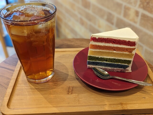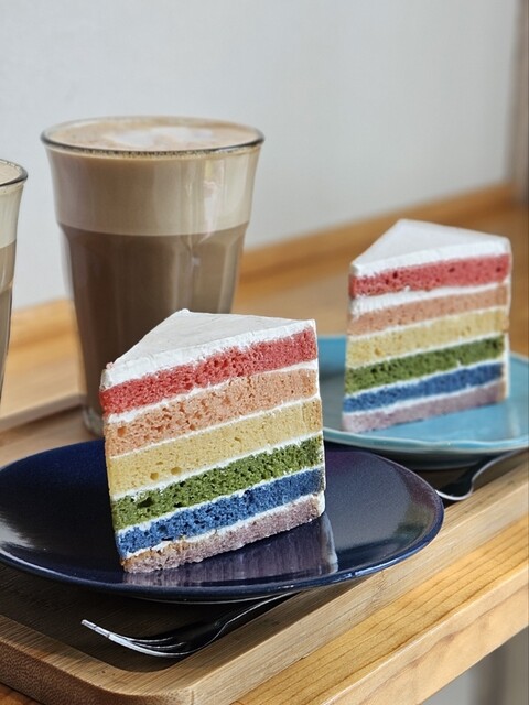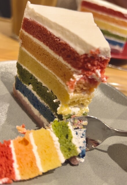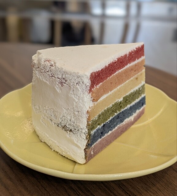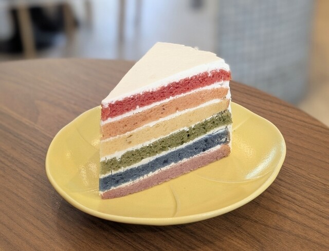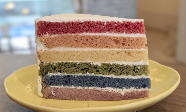 カラフルで可愛いレインボーケーキ。なんとこの美しい色合いでオールグルテン...