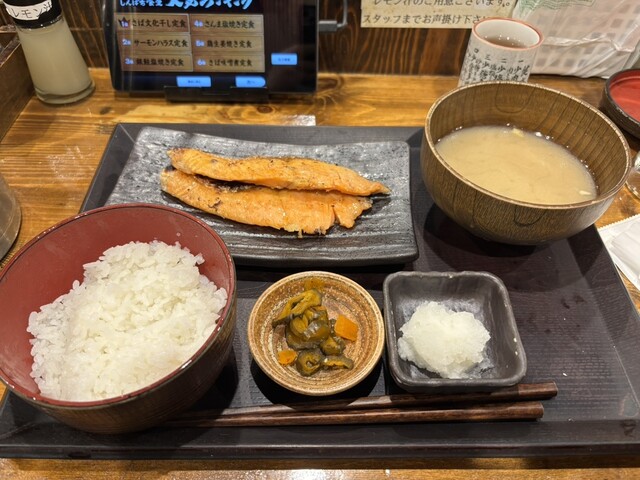 まず目を引いたのは、焼き上がったさばの美しい焼き色。皮はパリッと香ばしく、身はふっくらとしていて、文化干しならではの絶妙な塩加減が食欲をそそります。一口食べると、さばの旨味がじんわりと口の中に広がり、脂の乗りも程よく上品な味わいでした。