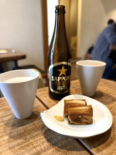 ビールの小瓶をいただきつつ茹で上がりを待ちます。白子の天ぷらなどとても魅力的な季...